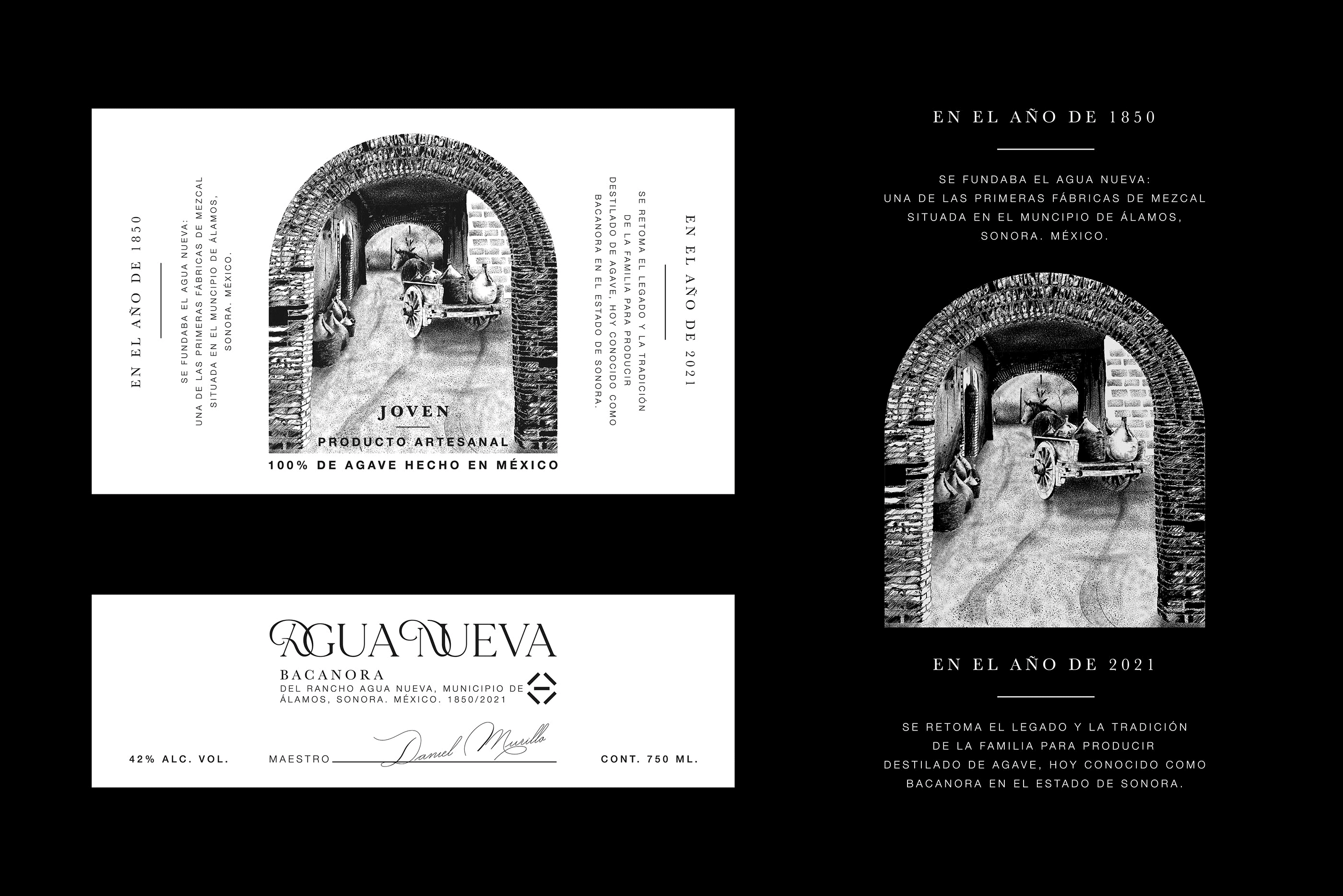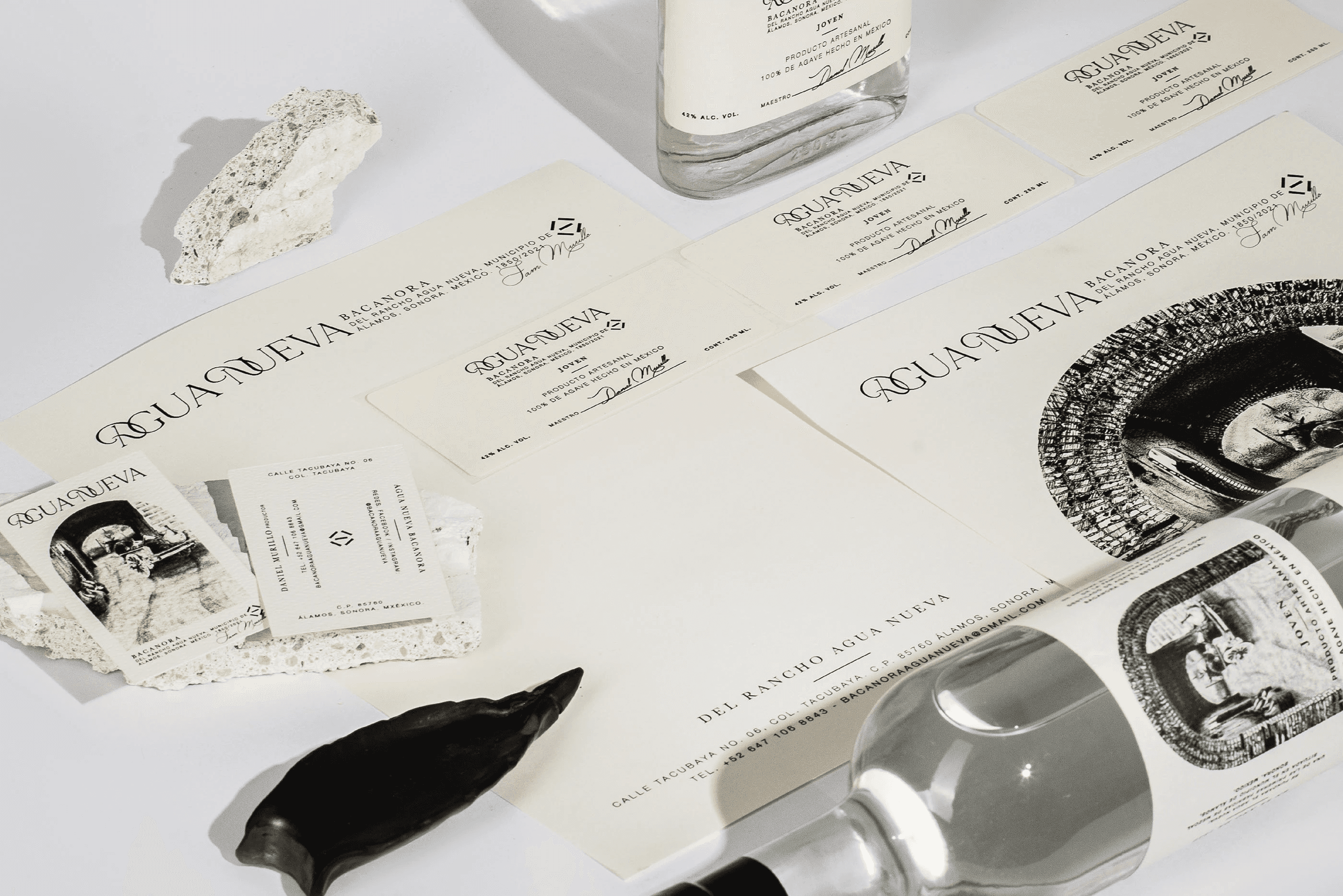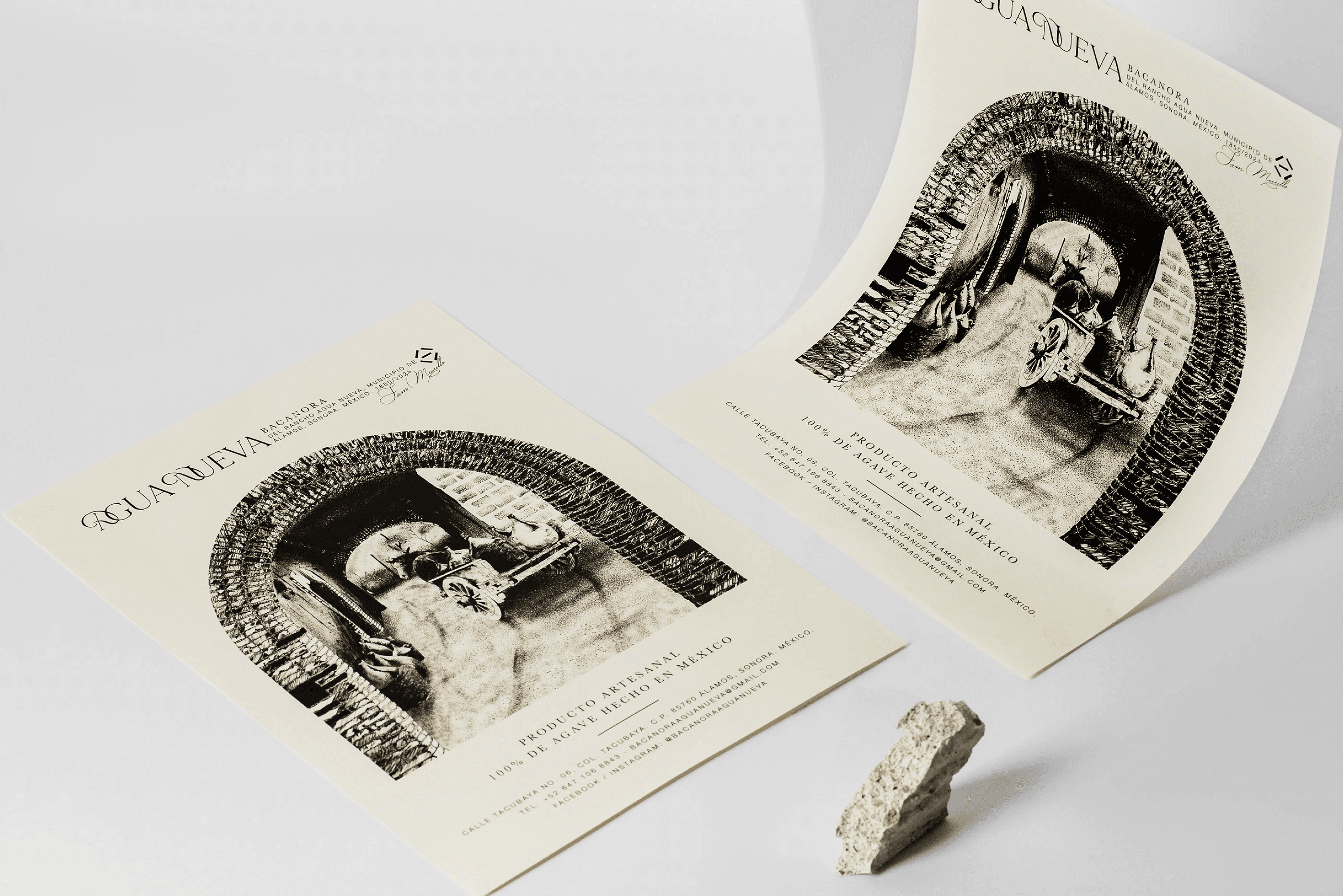 Although Agua Nueva now lies in ruins, its stories became the foundation of this project. We designed the brand identity to revive its past—using illustration, typography, and texture to imagine what this place once was. By diving into its history, we reconstructed details through storytelling and craftsmanship, turning them into a small but intentional work of art.